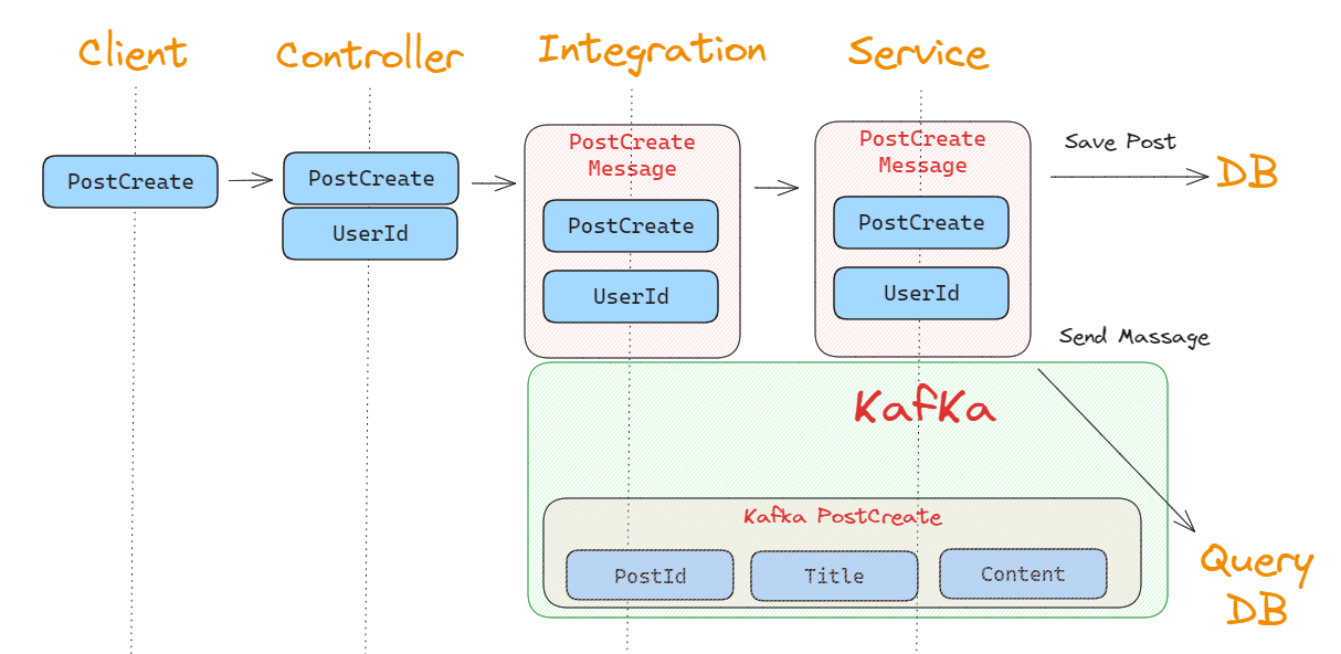 KafkaPostCreate를 직접적으로 보내고 있습니다.