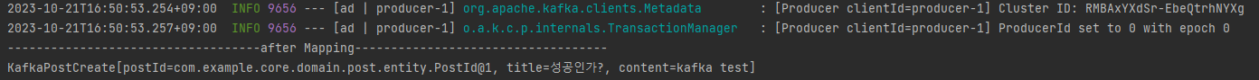 하지만 KafkaPostCreate에서는 ID값이 없어서 새로운 DTO를 만들어야 해결이 가능합니다.