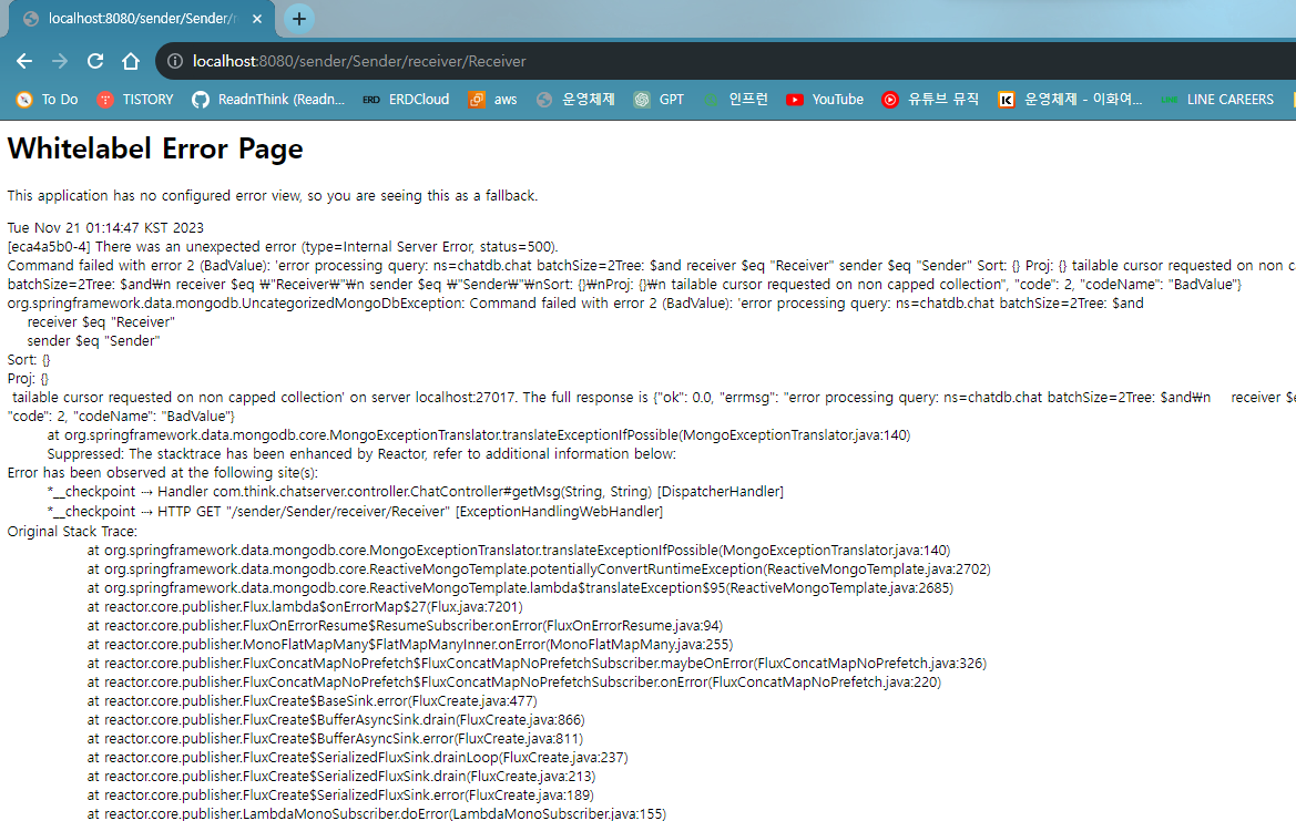 MongoDB를 사용해 Chatting 서버를 만드는 중 에러가 발생하였습니다.