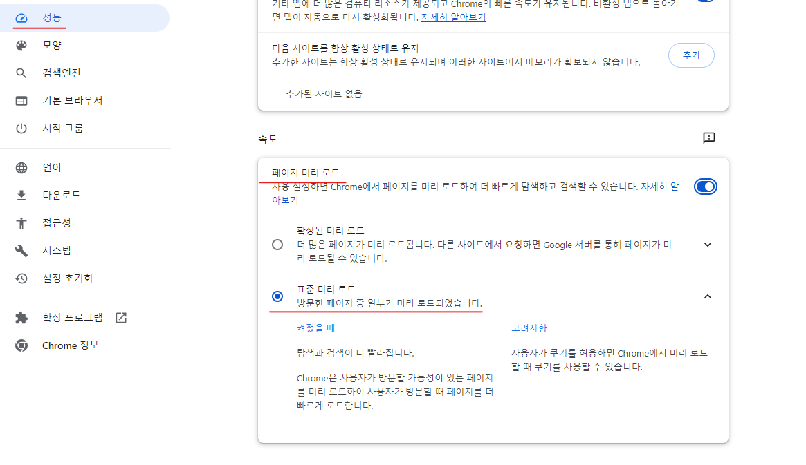 Chrome의 설정의 문제가 있다는 것을 확신하고 설정창을 보기 시작했습니다.