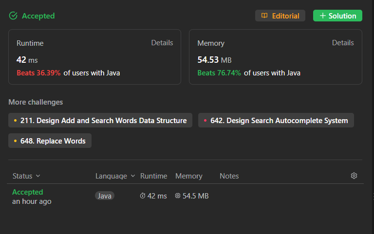 문자열을 효율적으로 검색하고, Try의 핵심기능인 startsWith기능을 최대한 효율적으로 하기위해 노력했습니다.