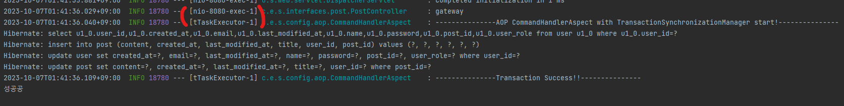 코드 변경 후 스레드가 정상적으로 비동기 처리되는것을 확인하였습니다.